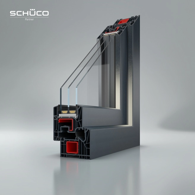 System okienny z tworzywa sztucznego Exclusive Line jest innowacyjnym, 7-komorowym rozwiązaniem w systemie Schüco LivIng, zapewnia bardzo wysoką izolacyjność cieplną, jak dotąd nieosiągalną bez zastosowania dodatkowych, kosztownych rozwiązań. Z uwagi na niezawodne i trwałe rozwiązania w tym systemie oferujemy, aż 10 lat gwarancji. Okno Exclusive Line to produkt, który pomoże ochronić Cię przed włamaniem, pozwoli na oszczędności w ogrzewaniu nawet do 45% oraz dzięki wersji Elegant będzie cieszyć wyjątkowymi walorami estetycznymi.